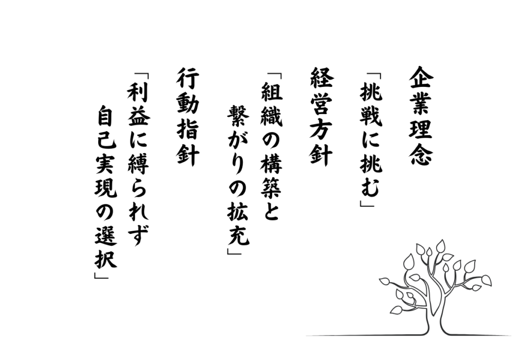 新たな考えを取り入れ、次なる企業使命に向けて更なる高みを目指す所存です。