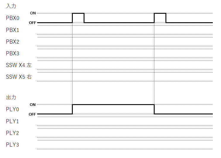 PLY0が点灯して、PBX0を離した状態