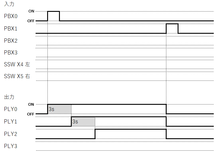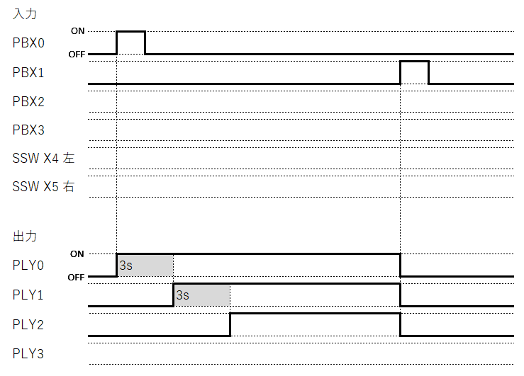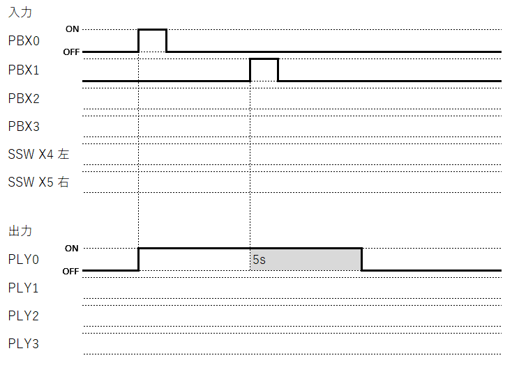 ・PBX1を押したのち離すと、PLY0は5秒後に消灯する。