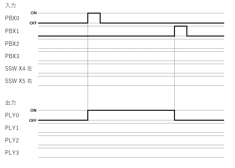 ・PBX0を押すと、PLY0は点灯する。