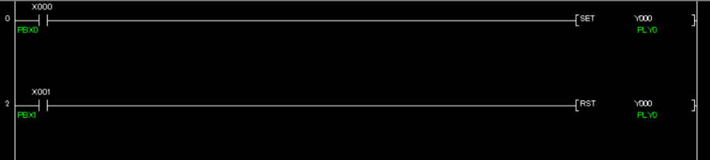 ・X0のa接点を、SET Y0に繋ぎます。