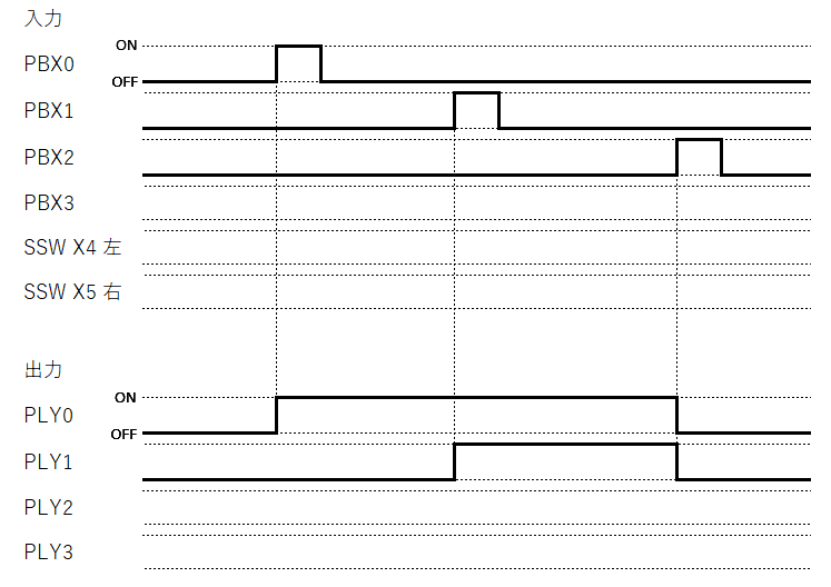 ・PBX0を押したのち離すと、PLY0は点灯する。