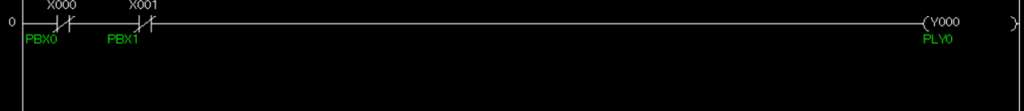 ・X0とX1のb接点のAND回路を、Y0のコイルと繋ぎます。