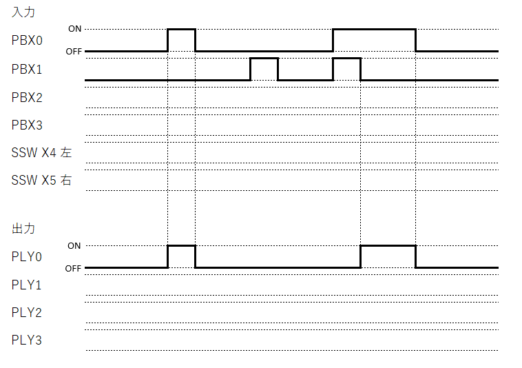 ・PBX0とPBX1の両方を押すと、PLY0は消灯する。