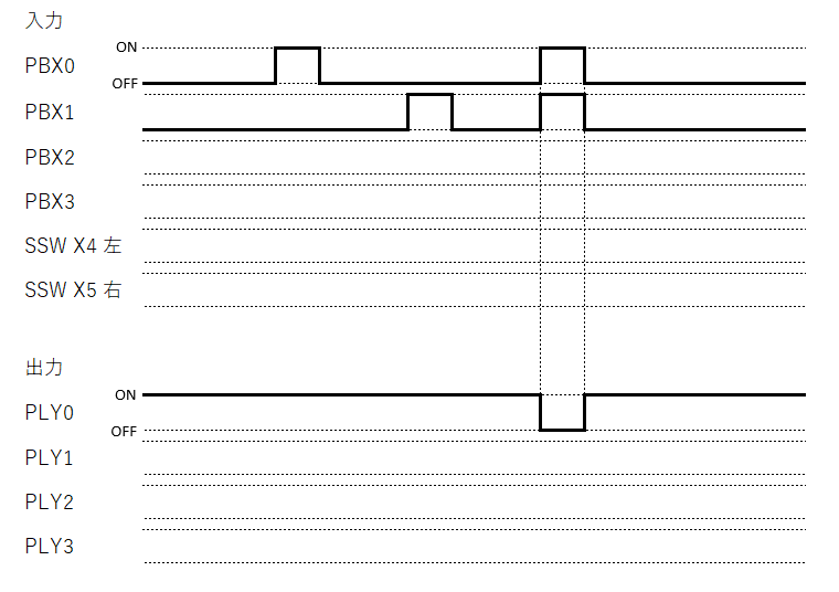 ・PBX0とPBX1の両方を押すと、PLY0は点灯する。